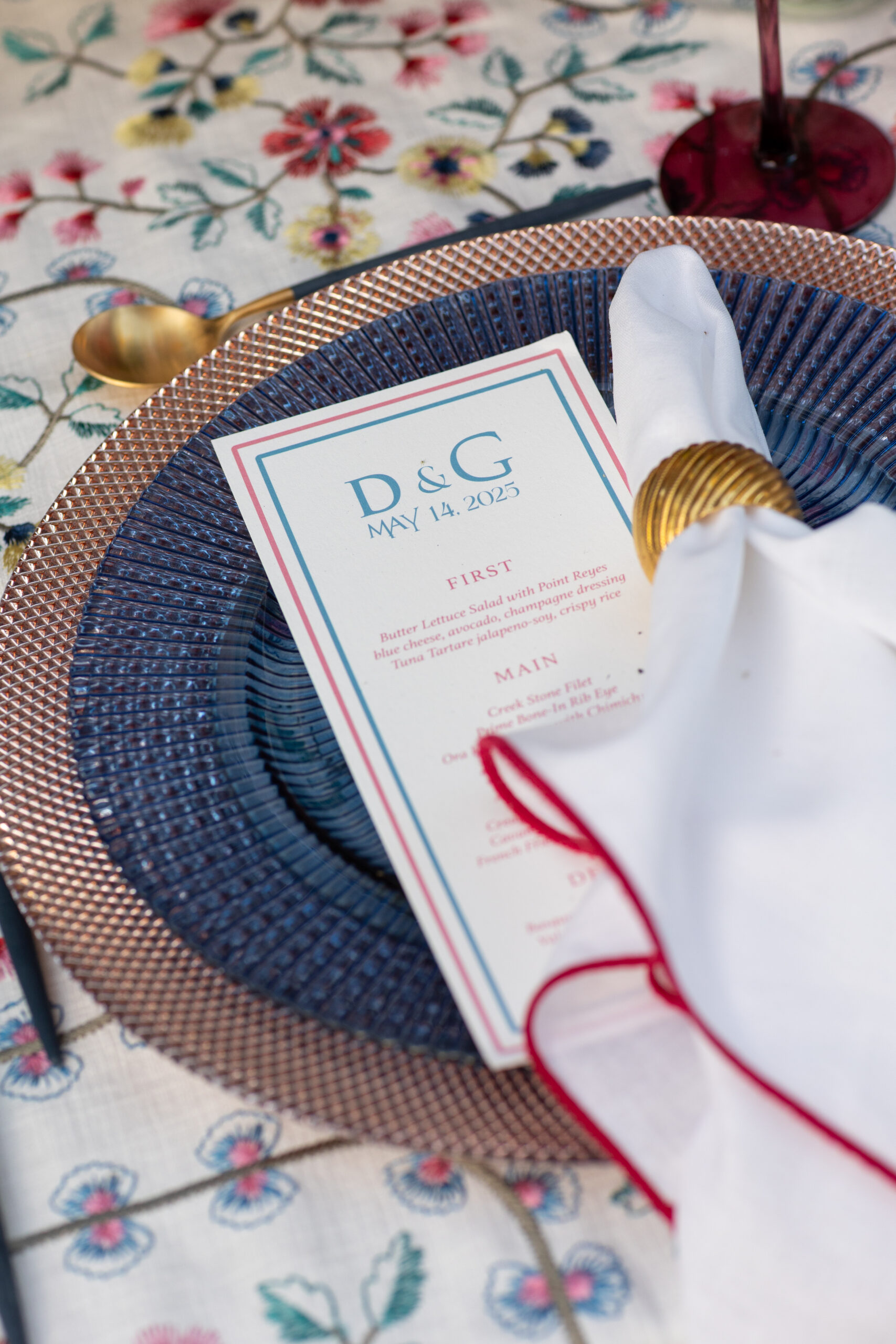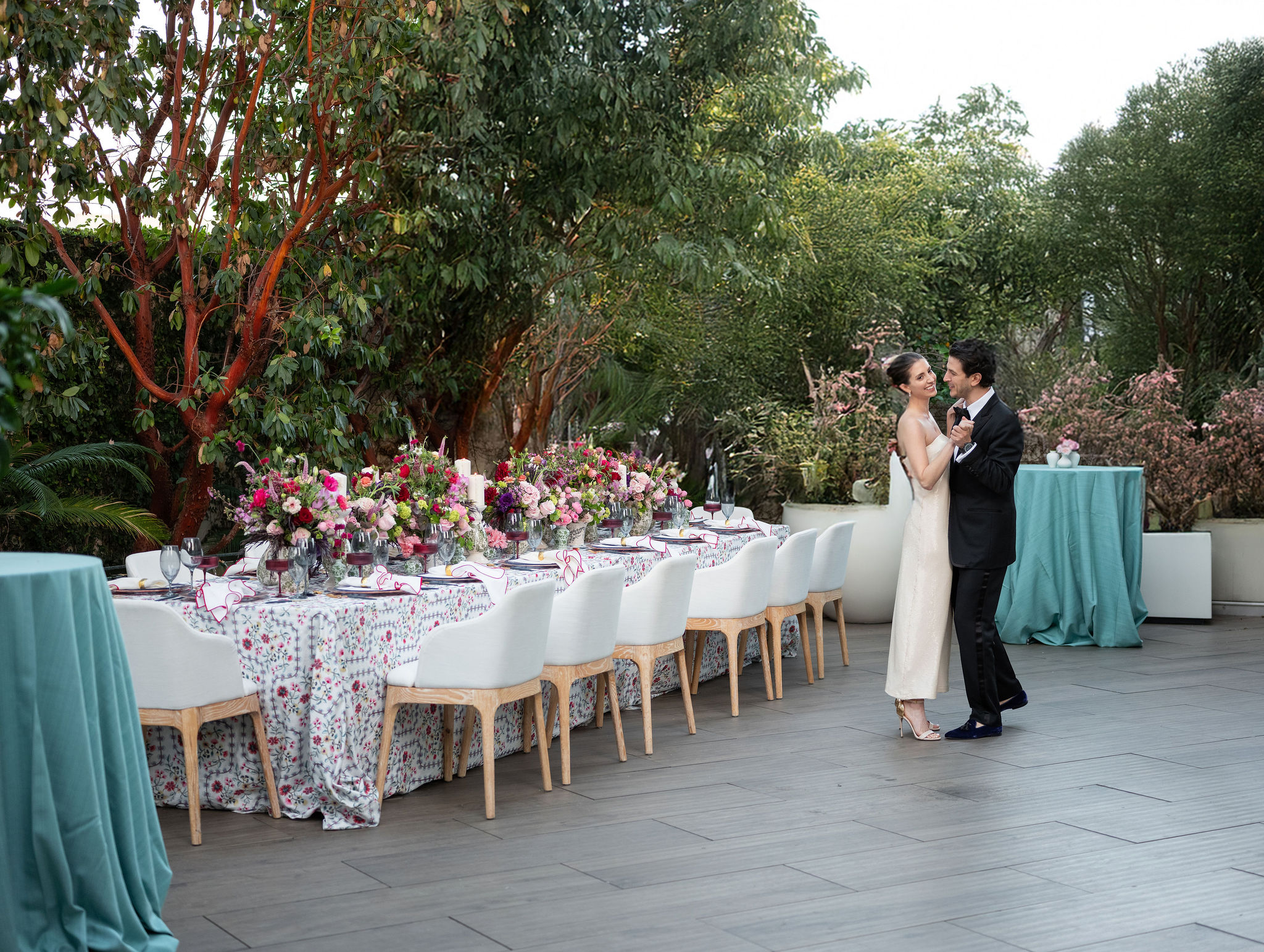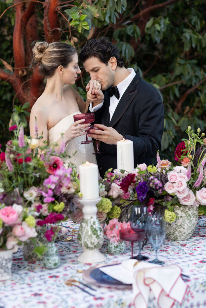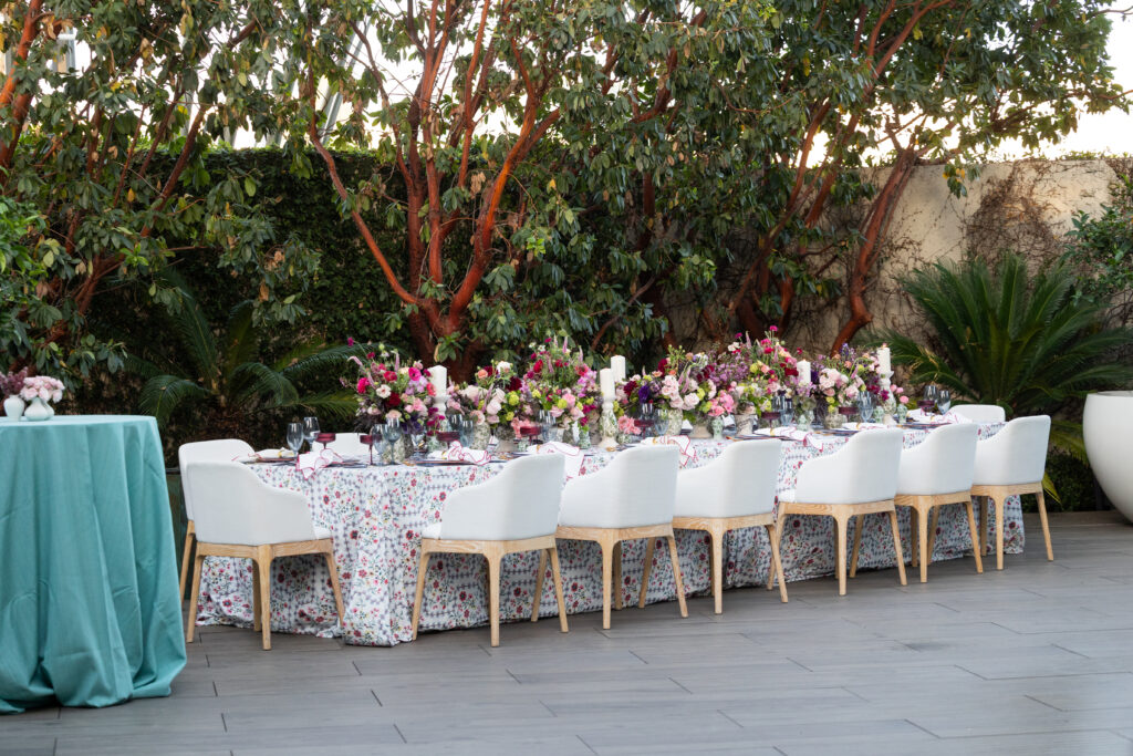 Natalie Sofer Weddings & Events was recommended by renowned photographer Gloria Mesa to Gabby and Danny to design an intimate and lovely engagement dinner. I suggested the Waldorf Astoria Beverly Hills as the ideal setting, drawn by its beautiful outdoor garden and impeccable service. The evening was thoughtfully designed with soft spring hues reflected in the florals, linens, and décor, creating a fresh and romantic ambiance. Guests enjoyed a delectable culinary experience featuring caviar and champagne—an effortless, elegant celebration marking the beginning of Gabby and Danny’s journey together.