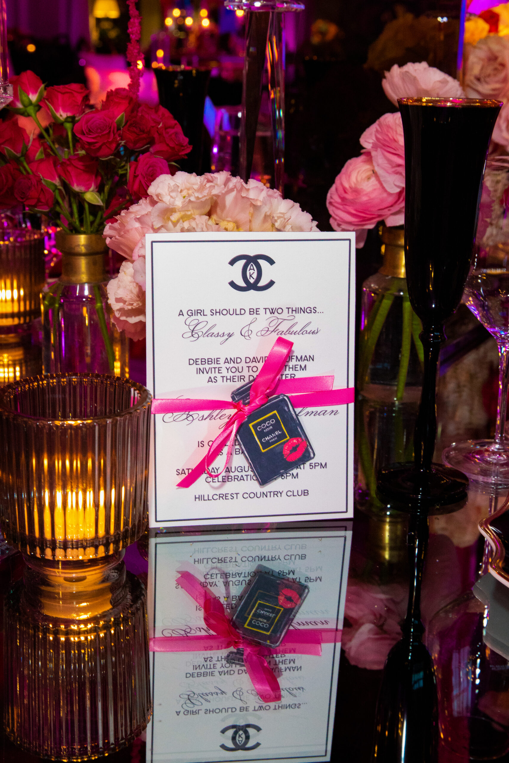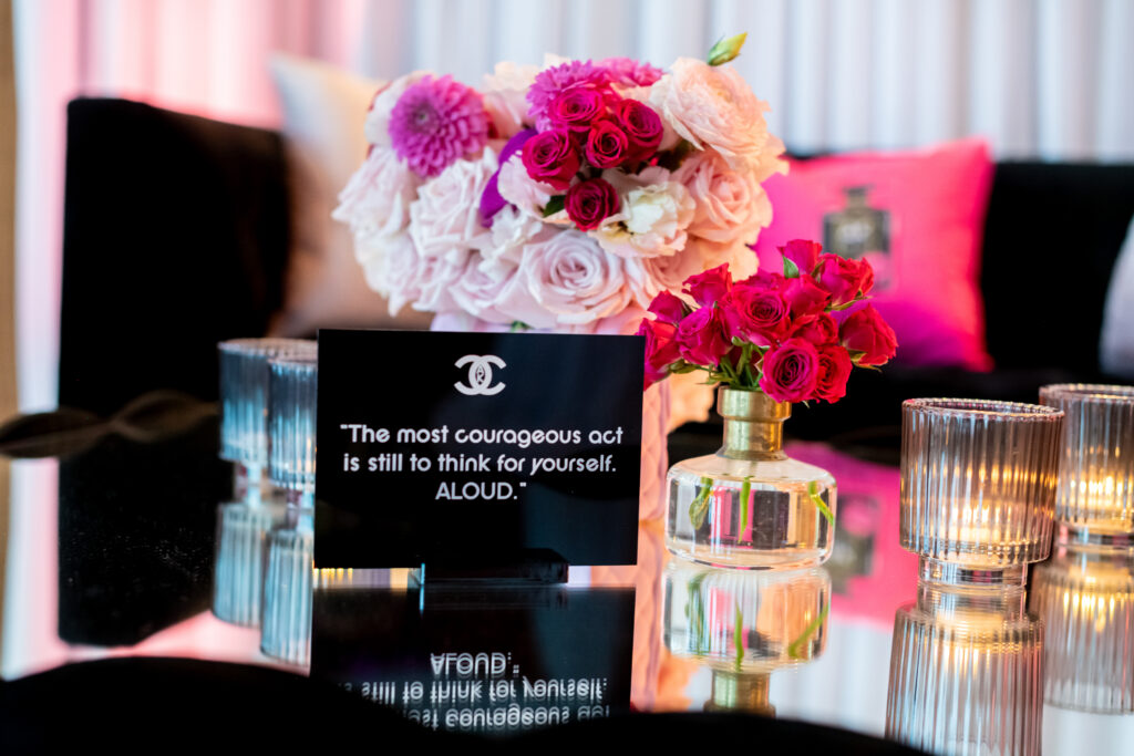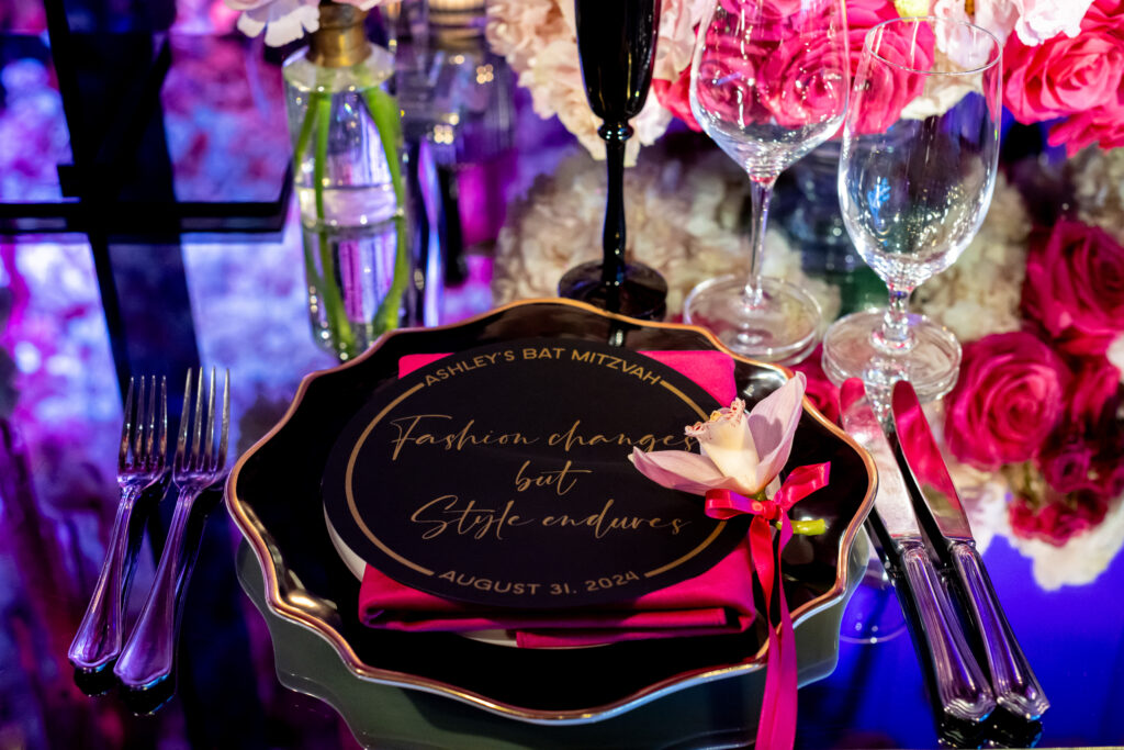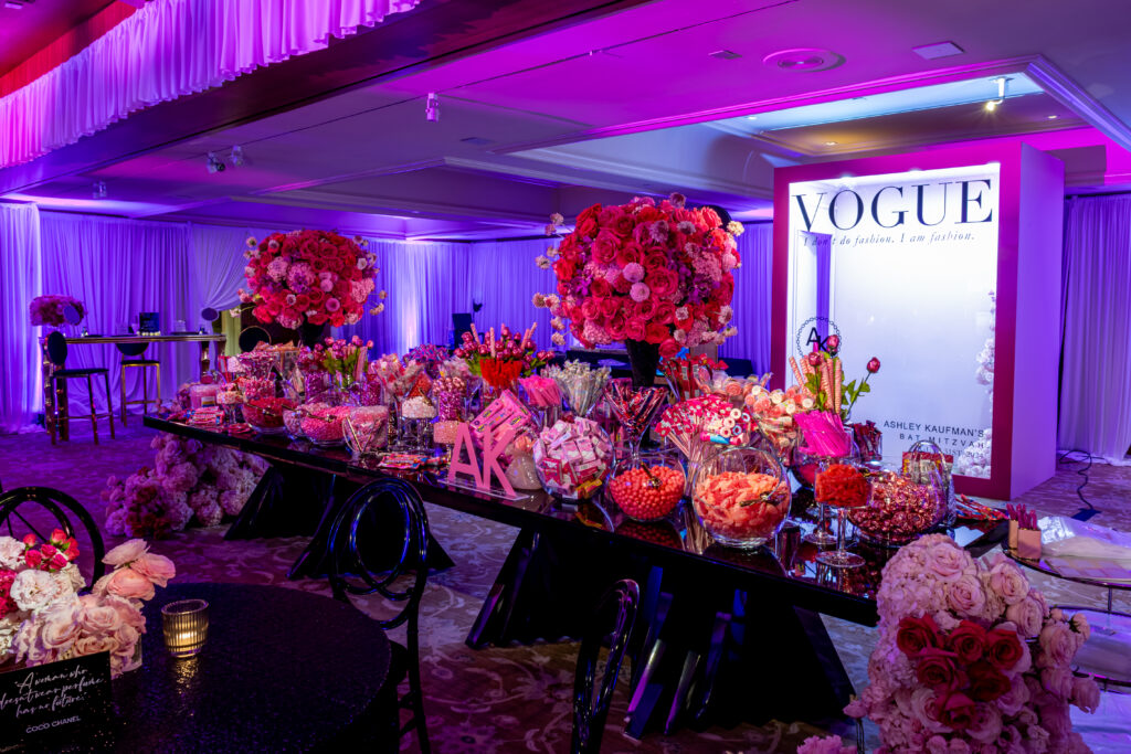 Ashley came to me with a love for all things pink, fashion, and Chanel. Together, we designed a Bat Mitzvah that felt like stepping into a fabulous boutique—where every detail told her story. From custom florals and striking black acrylic tables to curated Chanel quotes on each table, chic typography, fashion-forward swag, and a candy experience as stylish as the décor, every element was thoughtfully woven together. The result was a celebration that was effortlessly elegant, unapologetically fun, and uniquely Ashley.