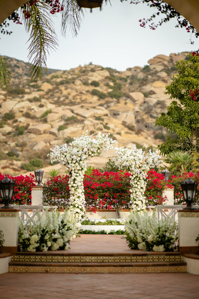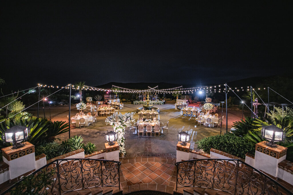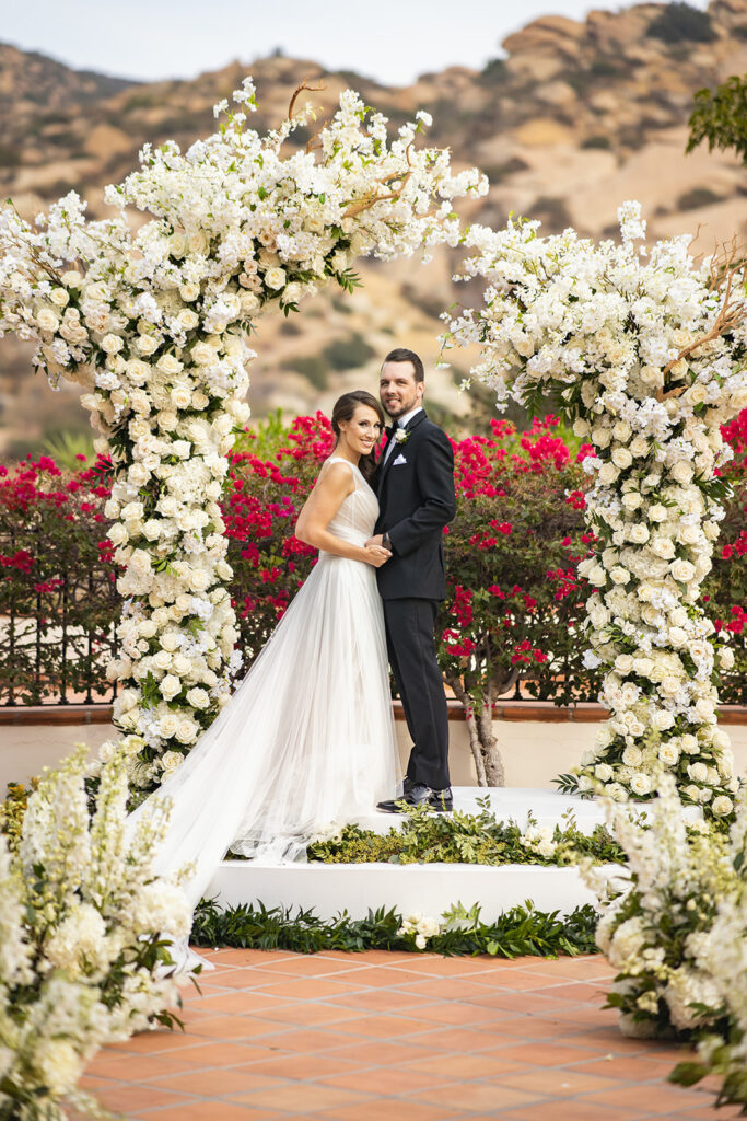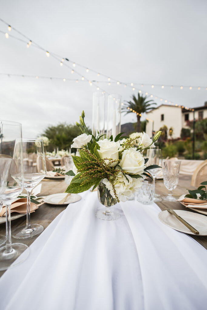 Just before the outbreak of COVID, Angela and Bryan discovered Natalie Sofer Weddings and Events through the approved vendor list at South Park Center. As circumstances evolved, we thoughtfully reimagined their celebration, transitioning from a 200-guest event to an intimate outdoor wedding for 68 close friends and family at Hummingbird Nest Ranch. While the original design featured rich burgundy tones and lush greens, we refined the aesthetic into soft whites and vintage-inspired elegance—perfectly suited to the natural beauty of the villa. The result was an intimate, romantic experience that felt warm, welcoming, and deeply personal. A live band played everything from Queen classics to today’s favorites, keeping the energy joyful and spirited throughout the evening. Despite the shift, guests felt the love and intention in every detail, and Angela and Bryan later shared that it was truly the best day of their lives.